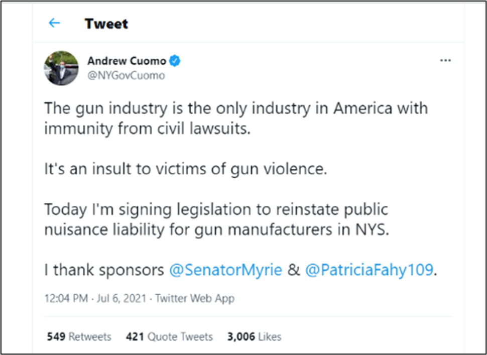 On July 6, 2021, New York Governor Andrew Cuomo tweeted: “The gun industry is the only industry in America with immunity from civil lawsuits.” Anyone that has spent even a few minutes researching vaccines knows, this statement is entirely untrue! There is another industry in America with immunity to civil lawsuits: the vaccine industry! The fact that Cuomo is not aware of this, or perhaps has an interest in ignoring this, is incredible given that he has been on a years-long, ongoing crusade crushing civil liberties and rights in his quest to mandate vaccines and remove vaccine exemptions. We hope that Cuomo will correct his tweet but if history is any guide, he appears to believe that the truth is whatever he says. As Cuomo pointed out, immunity from liability for injuries is “an insult” to those harmed. On that issue, we actually agree. Cuomo’s ignorance has earned a write-up on ICAN’s fact check hall of fame.