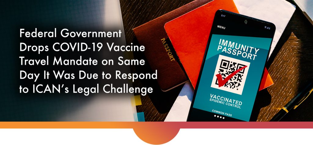The Federal Government dropped its COVID-19 vaccine travel mandate for non-citizens (the Travel Ban) on the same day its opposition to a motion for an injunction against that mandate was due in a lawsuit brought by ICAN’s attorneys, headed by Aaron Siri, Esq.
